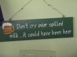 On the way out, we looked around the lobby at all of the awards and medals won by Flying Dog beers (see gallery). The kids got a kick out of the sign behind the reception desk that read: “Don’t cry over spilled milk…it could have been beer.”