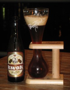 Kwak is a Belgian Strong Ale brewed by Brouwerij Bosteels in Buggenhout, Belgium (8%). Pours brown-gold with a beautiful head. The flavor is complex, with sweet notes of caramel and brown sugar, finishing with malt, spices, and alcohol.
