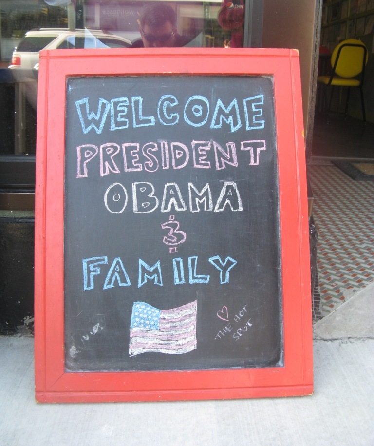 I had an Allagash White with dinner, and just as we were finishing our meal, the Obamas were too. There was a commotion down on the street as the SUVs pulled forward to pick up the First Family for the ride back to their hotel. From our second story perch, we had a great view of the President, First Lady and family as they left the restaurant and climbed into the waiting SUVs, but not before pausing and waving to the crowd. That Allagash White is one beer I’ll remember for a long time.