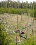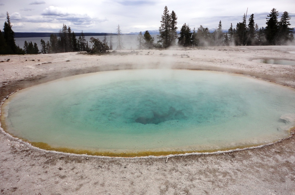 June 26, 2011 — We drove into Yellowstone National Park on Sunday, June 26 ready for a week of exploring the park and sampling the local beer. Our destination for our first night in the park was a cabin on Yellowstone Lake. After a detour to West Thumb Geyser Basin to take our first walk around the amazing thermal features, we saw our second bear of the trip, another grizzly.