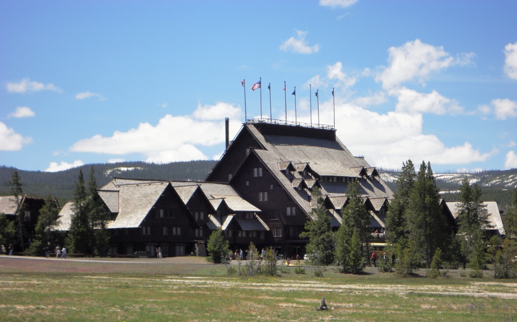 We left Gardiner, Montana on Thursday morning and drove back into Wyoming and the park, on a bearing south towards Old Faithful Village. Along the way, we stopped to explore the Mammoth Hot Springs area and Norris Geyser Basin – two amazing places. But we didn’t linger because we were anxious to see Old Faithful and check into the Inn. Like the geyser, Old Faithful Inn is an icon of Yellowstone. It’s a National Historic Landmark built in 1903-04 and is simply a classic. We really loved our time there.