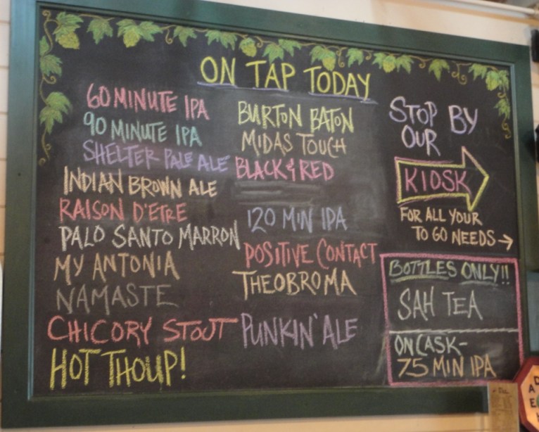 All told, I sampled 10 different Dogfish Head brews and there were many more I wanted to try. Except for the brewpub exclusive, Hot Thoup. I was looking forward to trying the new experimental Dogfish Head brew only available at the pub — until I read a description: “Carrot juice and pureed ginger root in an Imperial Pale Ale recipe. Served warm (around 90 F) and still (uncarbonated) with a carrot stick garnish.” Is that over-the-top? Hey, what’d you expect from a brewery that makes “off centered ales for off centered people.”