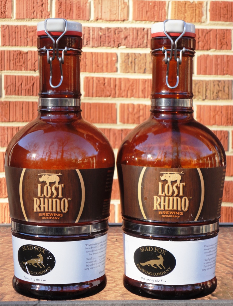 There were nine house beers on tap (see the Lost Rhino chalkboard below). I brought two growlers to fill so I toured the beer menu to help me decide what to take home in the growlers. There’s no prescribed sampler rack here – you can order 5 oz glasses of whatever beers you want to try. I sampled the: