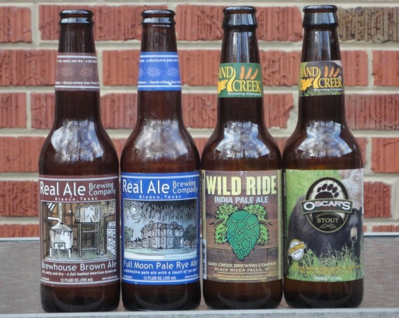Next, here comes a parade of bombers, starting with three from my local brewery – Baying Hound Aleworks in Rockville, Maryland. Featured here: Rockville Kölsch Style Ale, Lord Wimsey’s Mild Pale Ale, and Hop Shot India Pale Ale.