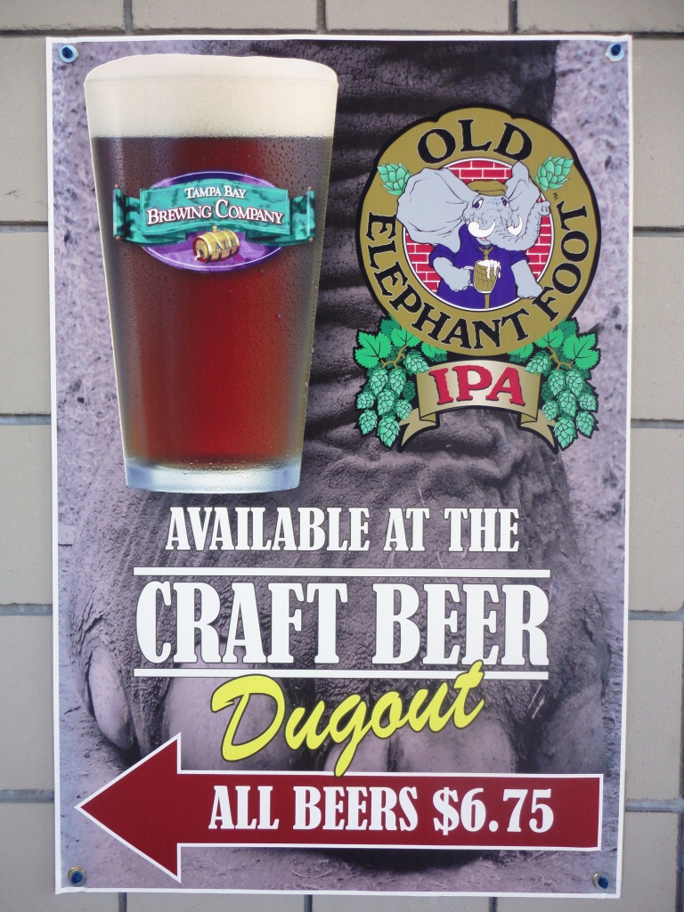 On my way to my seat I made a quick detour to the Craft Beer Dugout for local brew from one of my favorite breweries: Old Elephant IPA from Tampa Bay Brewing Company. I have a long history of visiting TBBC during trips to Tampa to see my parents. It was awesome to find it on draft at the baseball game, even at $6.75 a pop.