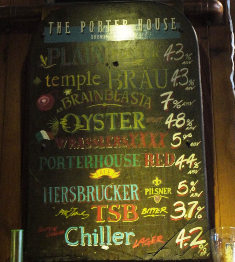 Best Beer: Tough call, but I’d have to go with the Brain Blasta, “a fulsome, winsome strong ale” according to Porterhouse Brewing Company (Confession: I’ve never heard a beer described that way and had to look it up).
