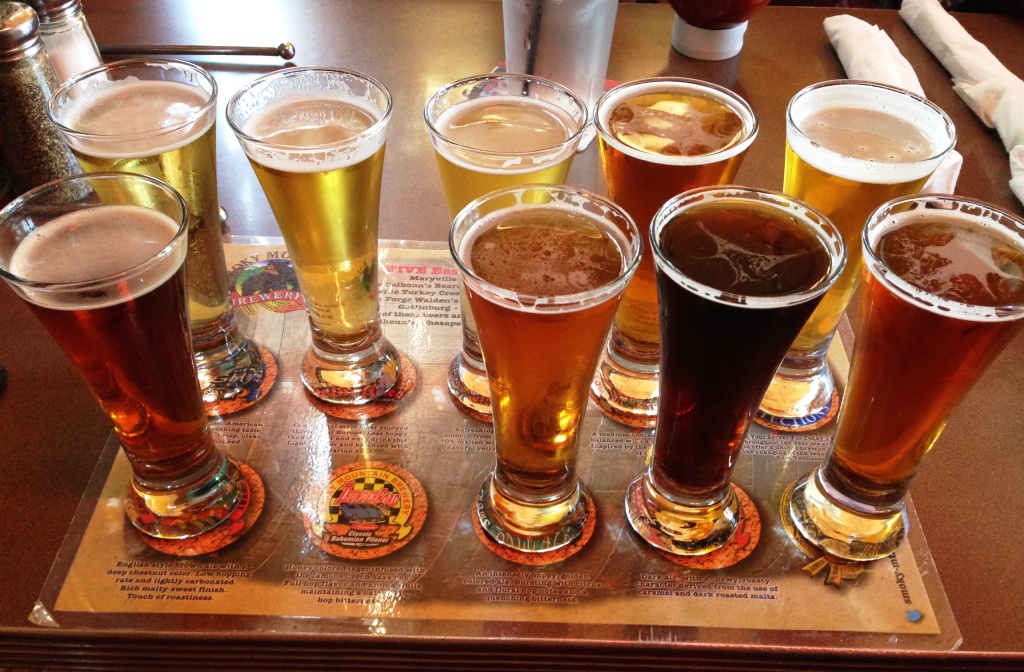 After hiking five miles around the Smokies, I was ready for a beer…or nine! My nine beer sampler tray: