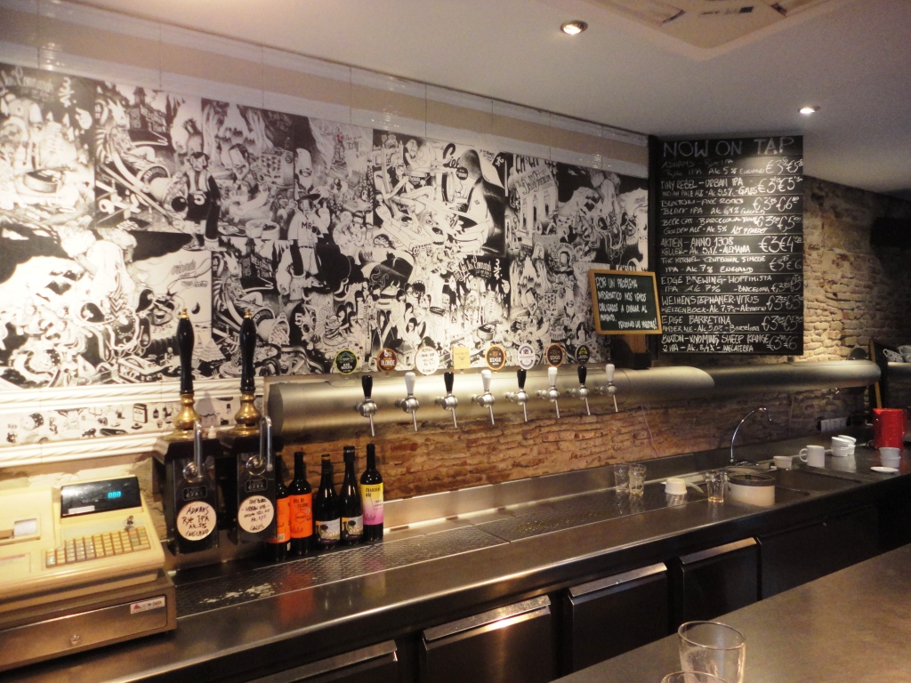 Biercab – this beer bar is rated the #1 Barcelona Beer Destination on RateBeer.com and it did not disappoint. I made it my first beer stop, arriving for lunch not long after touching down in Barcelona. With 30 taps, delicious tapas, and genuinely friendly service, Biercab was the only beer spot in Barcelona that I visited twice during my trip. The bar:
